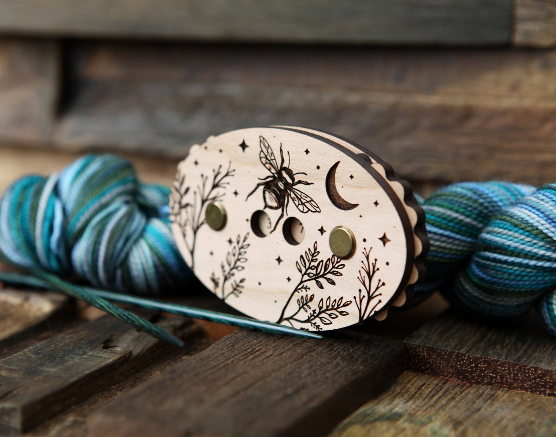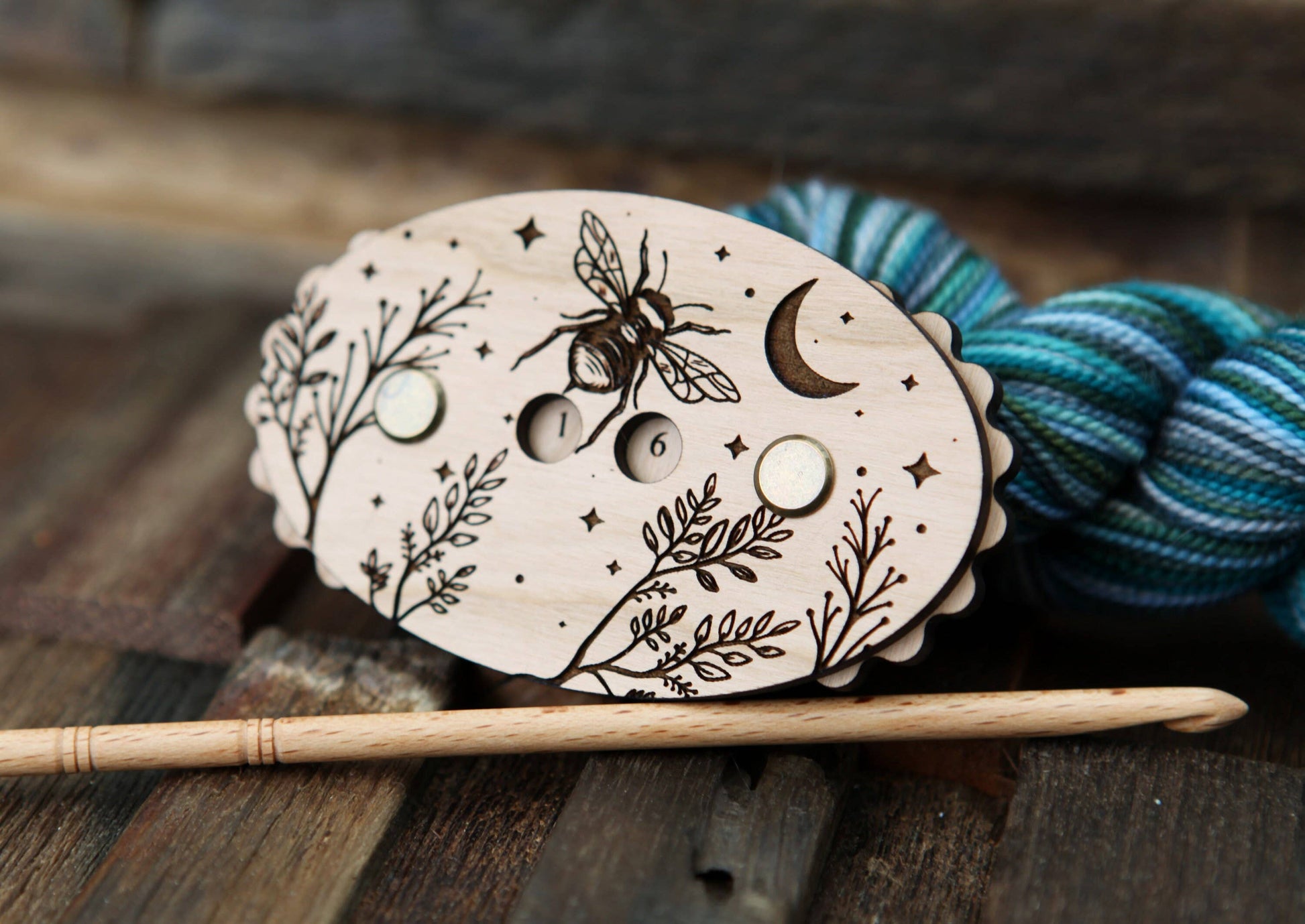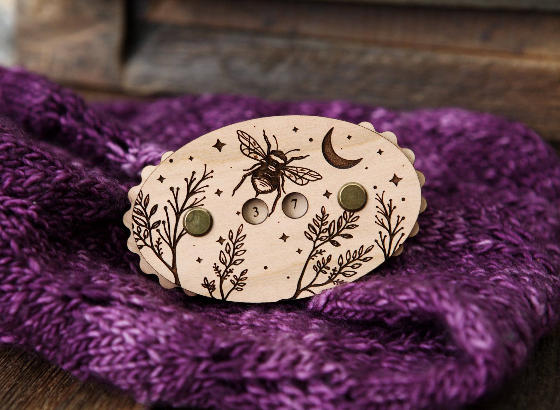 Keep track of your rows with this wooden Row Counter, a beautifully crafted tool for knitters, crocheters, and anyone else who wants to keep track of numbers. The design features a bee, blending buzzing beauty with practical use.